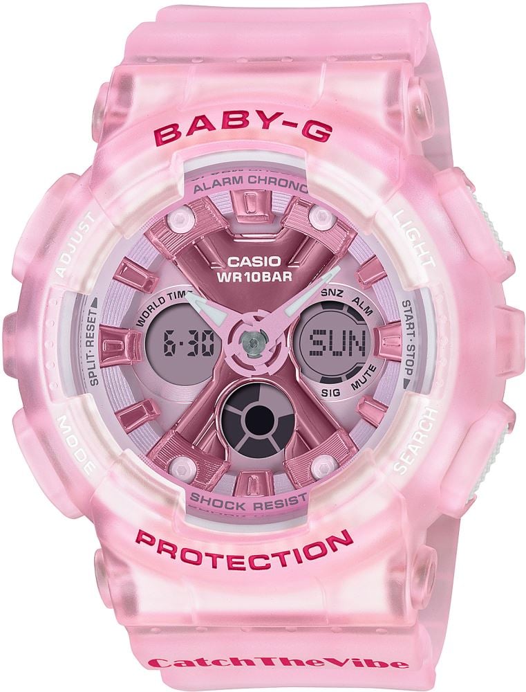 Dansçı, koreograf ve sanatçı RIEHATA ile iş birliği içinde tasarlanan dans temalı saatlerle, hip-hop retro bir havaya sahip olacaksınız. Casio BA-130CV-4A kol saati, yarı şeffaf pembe renkli silikon kordon ve gövde ile göz alıcı bir şıklık yansıtır. Saat kordonunda yer alan "Catch the Vibe" mesajı, 90’ların ve 2000’lerin dinamik retro enerjisini ön plana çıkarır. Hip-Hop kültürünü açığa çıkaran tasarım ile canlı bir stil oluşturmayı kolaylaştırır. Baby-G model saat, darbelere karşı dayanıklı ve mineral cam yapısı ile uzun kullanım ömrü vadeder. 100 metreye kadar su geçirmezlik özelliği sayesinde konforlu ve rahat bir kullanım olanağı sağlar. Neobrite, gece saat okumaları için optimum görüş faydası sunar. LED ışık, dünya saati, yüksek hassasiyetli kronometre, 5 günlük alarm, geri sayım sayacı, saat sinyali, tam otomatik takvim gibi pek çok fonksiyonu içerir. Tüm Casio erkek saatleri ve Casio kadın saatleri Türkiye distribütörü Ersa Saat garantisi ile sitemizde satışa sunulur. Casio saat modellerimiz, orijinal kutusu ve garanti belgesi ile sizlere gönderilir.