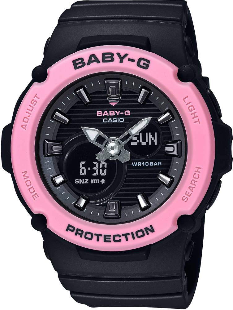 Casio’nun dinamik yaşamı kolaylaştıran Baby-G koleksiyonunun üyesi olan Casio BGA-270-1A kol saati, yenilikçi tasarımıyla dikkat çeker. Yaz günlerinden ilhamla tasarlanan sıra dışı model, plaj temasıyla sıcak sahillerde şıklığın anahtarıdır. Siyah silikon kordon ve canlı pembe çerçeveli sportif saat modeli, teknik özellikleriyle de Casio kullanıcılarının tercihidir.