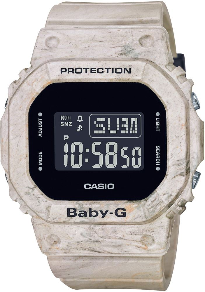 Dalgalı mermer görünümüyle klasik görünümlü saatlere meydan okuyan saat modeli, 1983’ten bu yana G-SHOCK’un bir parçası olarak günümüzde kolları süslüyor. Dijital görünümüyle modern, doğal görünümüyle şık bir saat olan BGD-560WM BABY-G, çiftlerin kullanımı için de idealdir.