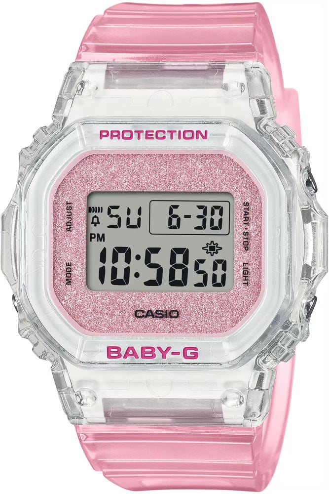 Tarzınıza dinamizm katmak ve enerjinizi yansıtmak amacıyla özel olarak tasarlanan, pembe sim detaylı çerçevesi ve yarı saydam pembe silikon kayışıyla göz alıcı CASIO BABY-G BGD-565GC-4DR sizlerle! Klasik BGD-565 modelinin köşeli ve kompakt formu, modern dokunuşlarla yeniden tasarlanarak bu modelde hayat buluyor. Yarı saydam gövdesi ve parıltılı kadranı sayesinde her ortamda ilgi odağı olmayı başarıyor. Sadece estetik yönüyle değil, darbe direnci ve 100 metreye kadar suya dayanıklılığıyla da maceraperest ruhunuza eşlik ediyor. Alarm, kronometre ve takvim gibi kullanışlı özelliklerle donatılmış bu saat, tempolu yaşam tarzınıza mükemmel şekilde ayak uydururken, canlı ve enerjik yapısıyla stilinizin en dikkat çekici parçası olacak. Işıltınızı yansıtın, tempoyu yakalayın, anın tadını çıkarın!