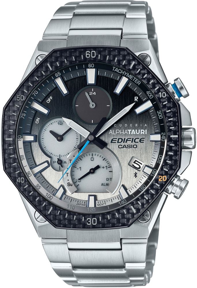İlgi çekici tasarımı ve güçlü performansıyla öne çıkan Casio EQB-1100AT-2A, Scuderia AlphaTauri Formula 1 ekibiyle ortak tasarlanan özel saat modellerinden biridir. Şık tasarımı, beyazdan maviye geçen çift renkli kadranı ve üstün malzeme kalitesiyle dikkat çeker. Tasarımsal özelliklerinin yanında akıllı telefon bağlantısı, hassas zaman ayarı, güneş enerjili piliyle başarılı bir performans sergiler.