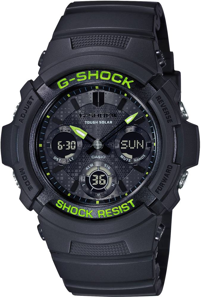 Yeşil baskılı karakterler ile bütünleşen efsanevi siyah tonlar, sarı LED aydınlatmadan aldığı destekle modernizmin kusursuz şıklığını bu modelde açığa çıkarıyor. Tough Solar sistemi ile gücünü güneşten alan saat, bitmeyen enerjisi ile günün her anında size ayak uyduruyor.