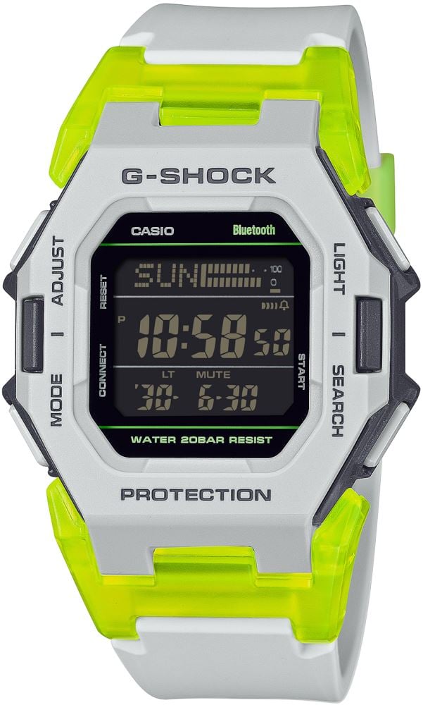 Şeffaf neon renkler, gri ve siyah zeminle birleşerek modern spor giyim ve ayakkabı trendlerini bileğinize taşıyor, size her zaman bir adım önde olma hissi veriyor. 200 metreye kadar suya dayanıklı bu saat, zorlu koşullara dayanıklı yapısıyla her ortamda güvenle kullanılabilir. Bluetooth özelliği sayesinde, akıllı telefonunuza bağlanarak saatiniz otomatik olarak ayarlanır.