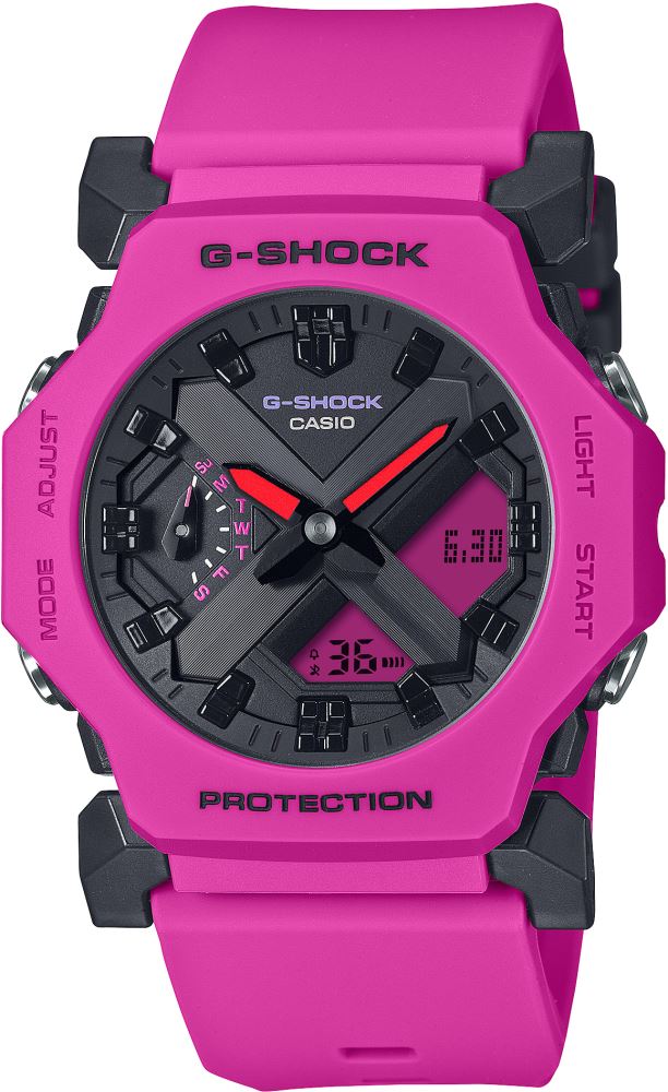 45,4 mm çapı ve 11,6 mm inceliğiyle GA-2300-4ADR, önceki modellere göre belirgin oranda daha küçüktür. Canlı pembe ve uyumlu LCD'ye sahip GA-2300-4ADR ile tarzınıza enerji katın.