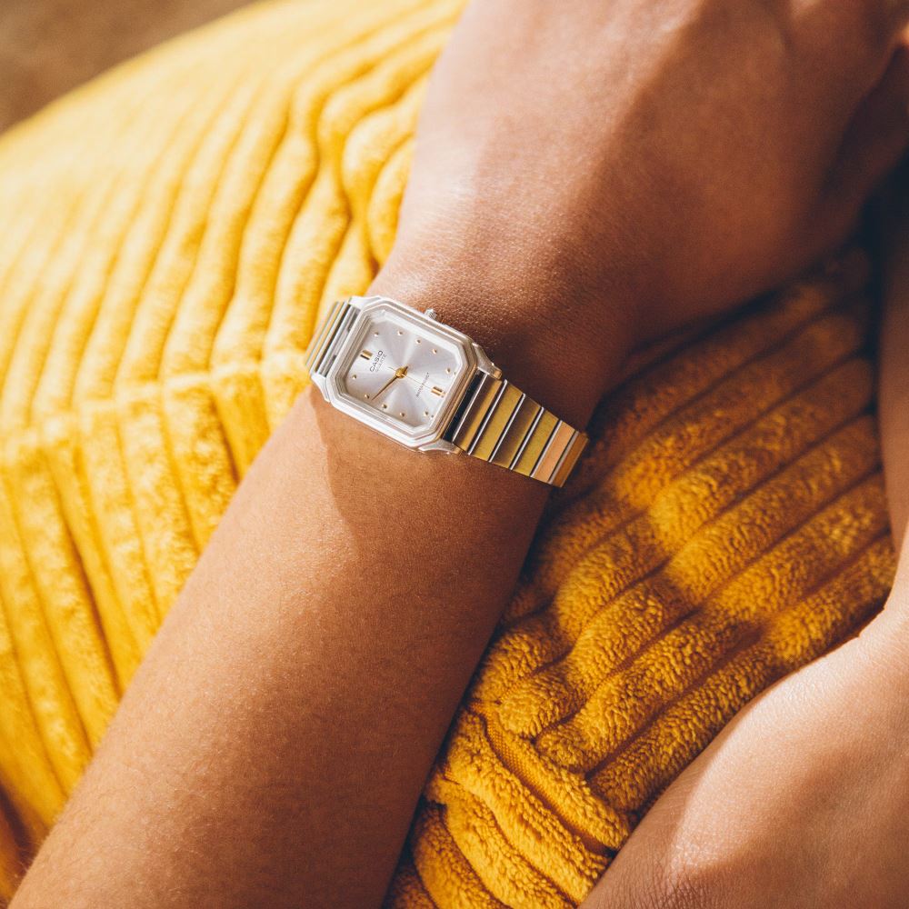 Zarafeti, sadeliği ve vintage estetiği bir araya getiren Casio LQ-400, zamansız bir tarzın modern yorumu olarak öne çıkıyor. Minimalist kadranı ve altın tonlu akrep yelkovan indeksleri, saatin sade ama dikkat çekici bir görünüme sahip olmasını sağlıyor. İnce kasası ve hafif yapısı sayesinde gün boyu konforlu bir kullanım sunan bu model, hem günlük kombinlerde hem de özel günlerde zarif bir tamamlayıcı olarak tercih edilebilir. Klasik analog mekanizmasıyla güvenilir zaman ölçümü sunan Casio LQ-400, el yıkama sırasında veya suyla hafif temas eden durumlarda dayanıklılığını koruyacak şekilde tasarlanmıştır. Böylece günün her anında tarzınızı korurken, pratik yapısıyla yaşamınıza kolaylık katar. Sadeliğin gücünü yansıtan bu model, vintage tarzı seven, minimal detaylarda şıklık arayan kadınlar için ideal bir seçimdir. Casio’nun kalite ve dayanıklılık geleneğini taşıyan LQ-400, zarif tasarımıyla her dönemin favorisi olmaya aday bir saat.