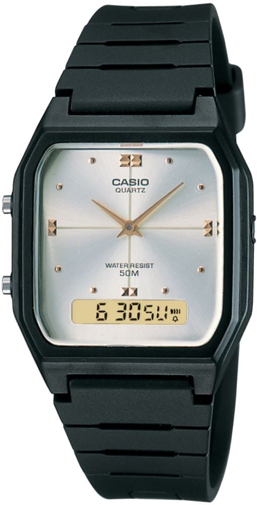 Zamana Şıklık Katın: CASIO STANDART AW-48HE-7AVDF Kol Saati Modern çizgilerle zarafeti buluşturan bu özel model, beyaz kadranı ve altın rengi ibre ile indeksleriyle dikkat çekiyor. Dijital göstergesi sayesinde zamanı hissetmekle kalmaz, teknolojiyle de iç içe olursunuz. Siyah silikon kayışı, hem sportif hem günlük kullanıma uygun rahatlık sunar. 50 metre su geçirmezlik özelliğiyle maceralarınıza her an eşlik eder. Stil, dayanıklılık ve fonksiyonelliği bir arada sunan bu saat, zamanı ölçmenin ötesinde, tarzınızın ifadesi. Zamanı yaşayın, ona stil katın.