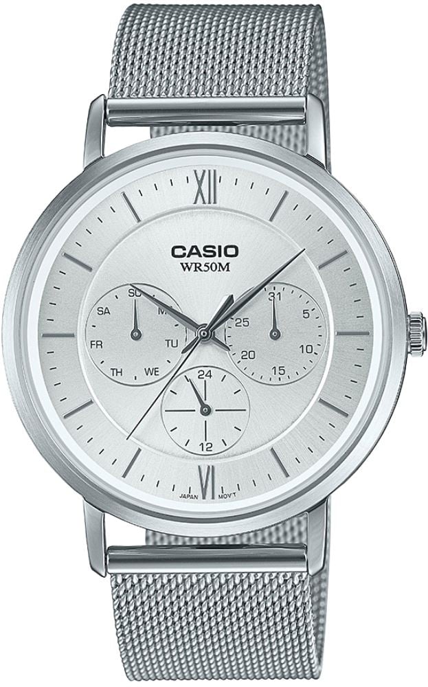 Efsane analog ailesi, artık daha ince bir profille ve çok kadranlı tasarımla geliyor. Siyah beyaz stildeki kullanışlı gün, tarih ve 24 saatlik iç kadranlarıyla ihtiyacınız olan bilgileri içeren, sade ve güzel görünümlü bir saat. 50 metreye kadar su geçirmezlik özelliğine sahip olan bu saatler, günlük yaşamınızda planlı veya plansız yaptığınız her şeye dayanıklıdır. Gümüş metalik kordonla bir ikili oluşturan siyah, lacivert veya beyaz saat kadranları arasından seçim yapabilir ve daima modaya uygun bir tasarımın keyfini çıkarabilirsiniz. Ürün, şık ve kolayca ayarlanabilen örgü kordonla sunulmaktadır. Sitemizde yer alan tüm Casio erkek saatleri ve Casio kadın saatleri, Türkiye Distribütörü Ersa Saat garantisi ile satışa sunulur. Tüm modellerimiz, orijinal kutusu ve garanti belgesi ile birlikte sizlere gönderilir.