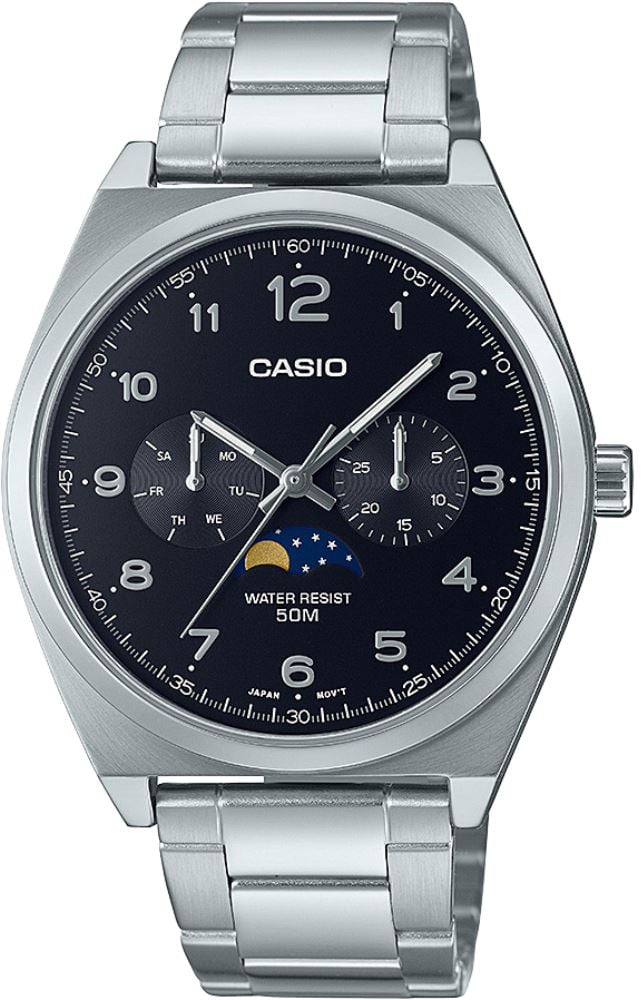 Birden çok ek kadrana sahip bu analog saat ile, ayın evrelerini takip edin.