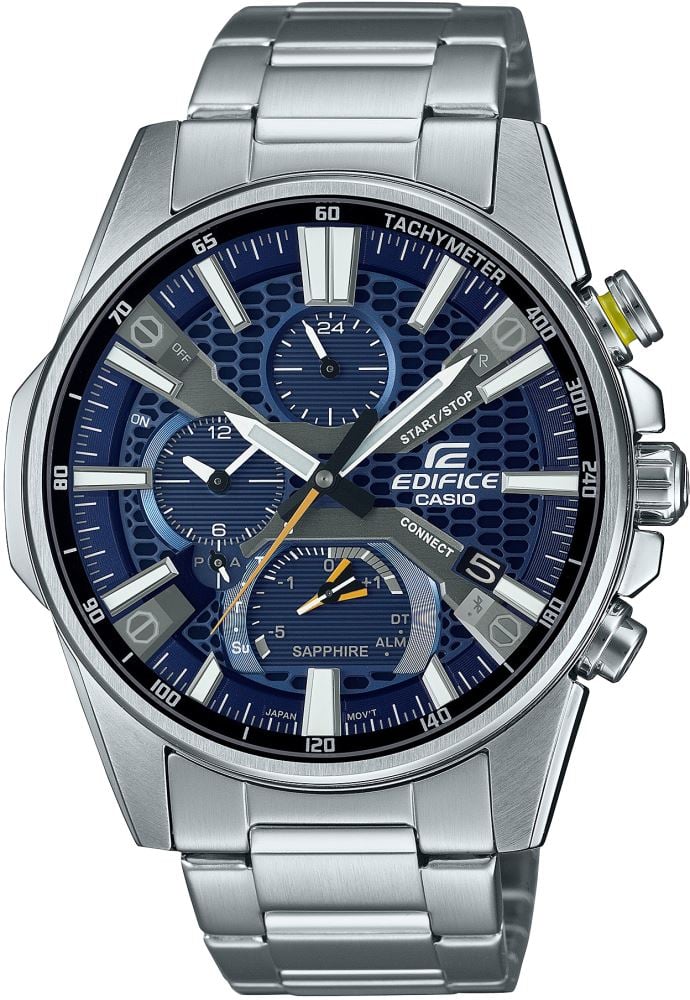 Saatinizi Bluetooth® üzerinden akıllı telefonunuzla senkronize ederek gittiğiniz her yerde kolayca kullanın ve zamana tamamen hakim olun. Zaman dilimleri arasında kolayca geçiş yapmak ve Dünya Saati ile alarm ayarlarını yönetmek için uygulamaya dokunmanız yeterlidir. Çift zamanlı ekranlar, dünya genelinde seyahat ederken iletişimde kalmayı kolaylaştırır. Milisaniye hassasiyetinde ölçülen kronometre verilerini akıllı telefonunuza aktarın, tek bir düğmeye basarak telefonunuzu bulun ve daha fazlasını yapın!