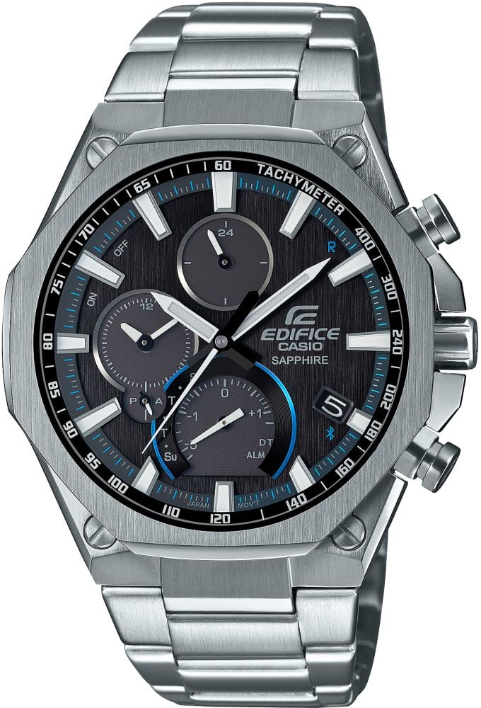 Casio EQB-1100D-1A kol saati modeli profesyonel yarış ekiplerinin detaylı geri bildirimleri ile geliştiriliyor. Bluetooth Smartphone link özelliğine sahip olan saatin, Tough Solar güç sistemi de çok zayıf gün ışığında bile şarj edebilme kolaylığı sunuyor. Doğası gereği kronograf özelliği bulunan saatin toplamda yedi kadranı bulunuyor. Bu model, tüm gelişmiş özelliklerine rağmen sadece 8,9 mm incelik ile çok da zarif bir görüntüye sahip oluyor. Yarı parlak metal rengi ve sekizgen çerçevesi ile hem şık hem de sportif bir görüntü sunuyor ve bu tarz dinamik saatlerden hoşlananlar için oldukça ideal görünüyor.