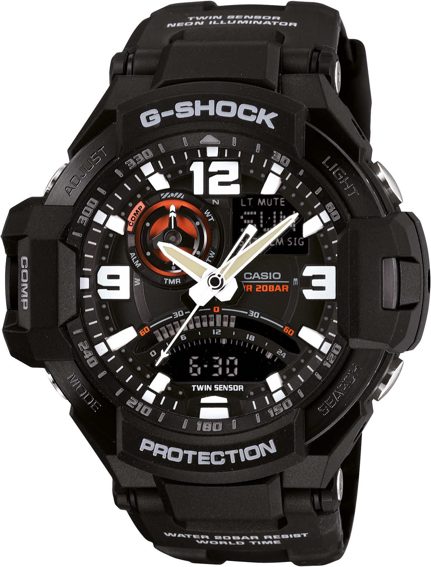 Hem analog hem de dijital formatta iki adet saati barındıran GA-1000-1A kol saati, aynı zamanda Casio tarafından bir saatte ilk kez kullanılan dijital pusulaya sahiptir. Comp tuşu kullanılarak aktif hale getirilen pusula özelliği; bulunulan yönün belirlenmesi, hafızaya alınması ve bulunulan alanın açısal değerleri gibi bilgileri kullanıcılara aktarır.