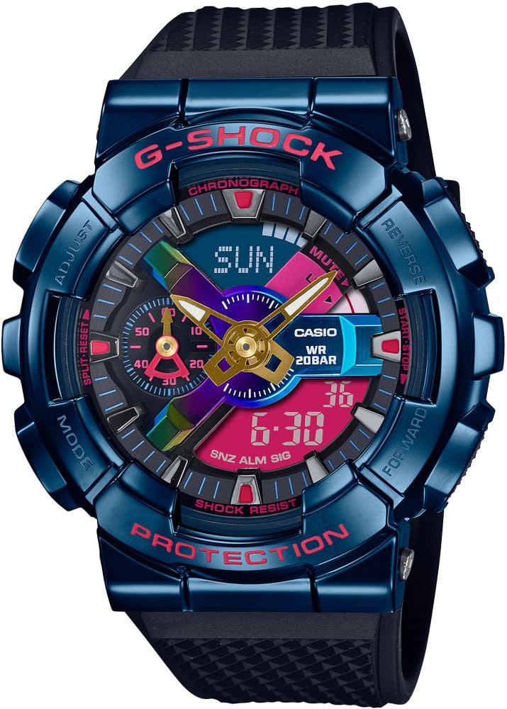 Casio GM-110SN-2A kol saati, mavi iyon kaplamaya ve metal çerçeveye sahip oldukça şık bir saattir. 200 metreye kadar su geçirmez özelliği sayesinde denizde ve havuzda kolunuzdan çıkarmanıza gerek kalmaz. Darbeye dayanıklılığı ile olası çarpmalarda ve düşmelerde zarar görmez. LED ışığı, otomatik ışık anahtarı ve seçilebilir aydınlatma süresi sayesinde geniş bir kullanım alanı sunar. Gökkuşağı buharı kaplamalı kadranı, renkli LCD ekranı ile bir saatten daha fazlasıdır. Casio erkek ve kadın saatleri distribütörü olan Ersa Saat tüm ürünleri garanti belgesi ile satmaktadır.